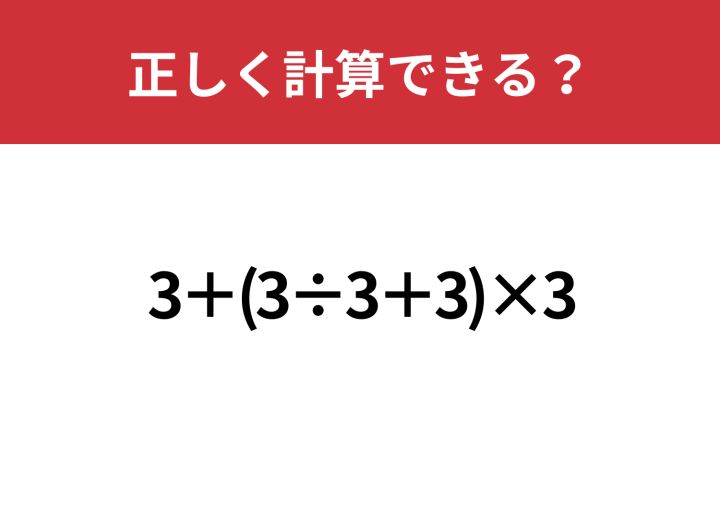 3. 簡単そうに見えて油断できない!「3+(3÷3+3)×3」正しく計算できる?