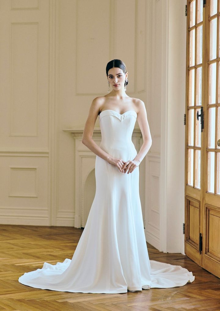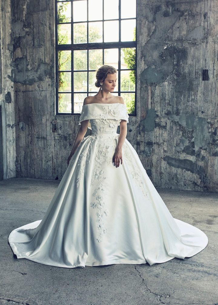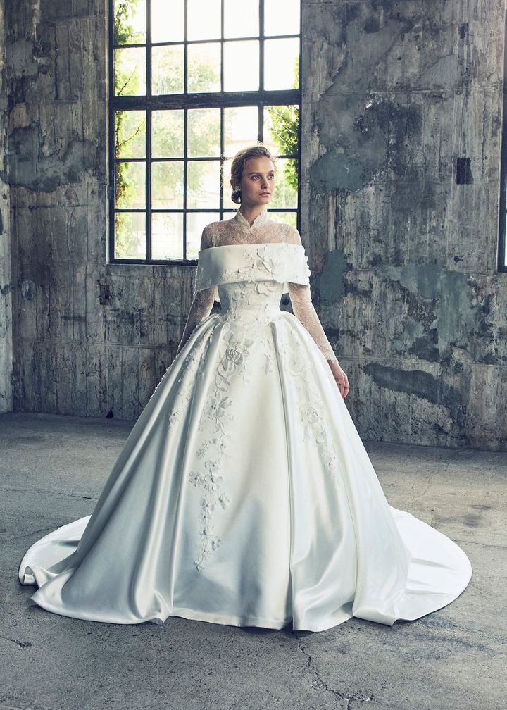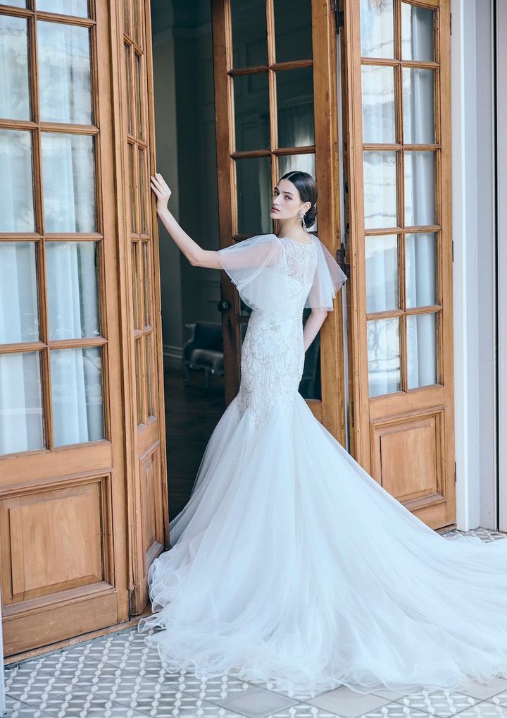 スペインを代表する人気ブランド、ロサ・クララにもチェンジャブルドレスが。フランス製の上質なレースを贅沢に使用したマーメイドドレスは、オフショルダー部分を外してベアトップスタイルとして着こなすこともできます。