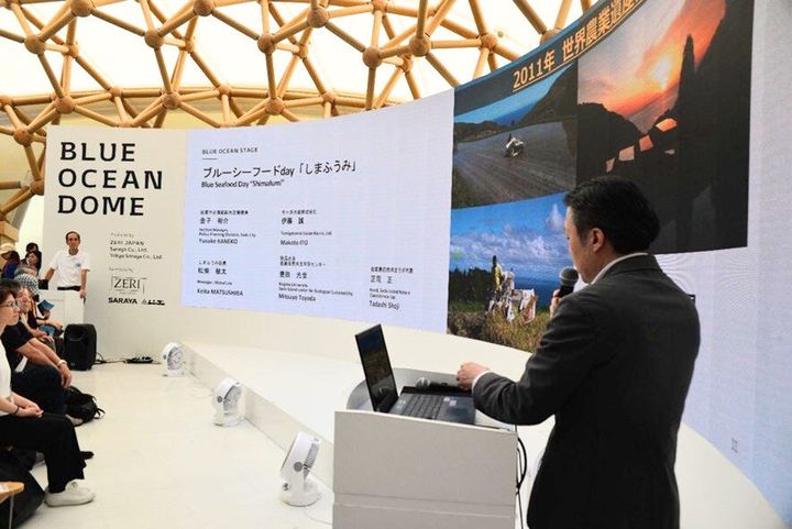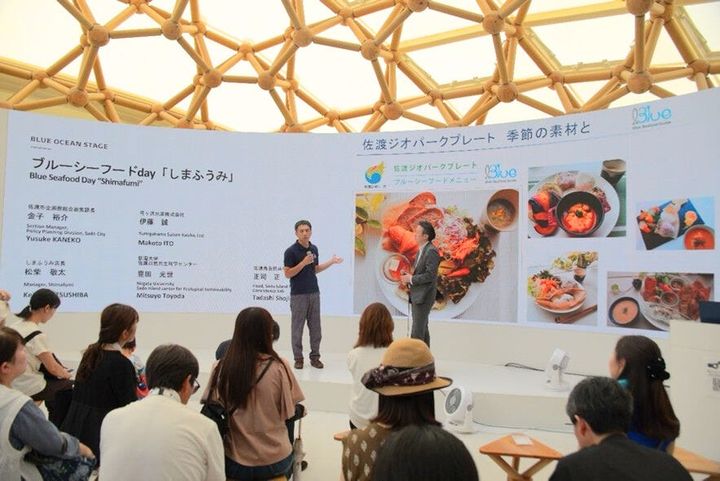 海のパビリオン「BLUE OCEAN DOME」で佐渡島の皆さまが登壇