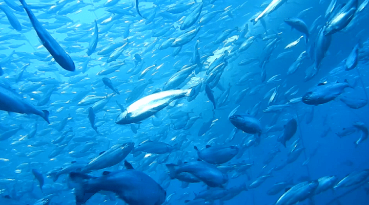 次に登場したのは、株式会社ニッスイのグループ企業で、ブルーシーフードパートナーの弓ヶ浜水産株式会社から、養殖部企画・開発課の伊藤誠さん。佐渡サーモン養殖の取り組みを紹介されました。このギンザケは国際的な養殖のエコラベルであるASC認証を取得していて、セイラーズフォーザシーが発行しているサステナブルな水産物のリストであるブルーシーフードガイドにも掲載されています。動画で紹介されたギンザケが泳ぐ様子は圧巻でした。