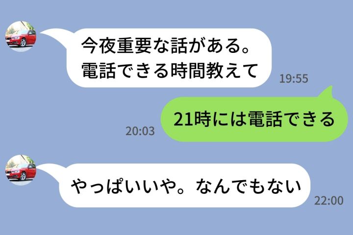 「今夜重要な話がある」と予告した彼氏→1時間後「やっぱいいや」スクショを送った5秒後の本音に呆れた