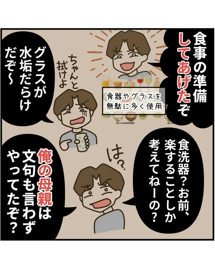 家事は、妻の仕事だと思っているのでしょう。少しやっただけで、毎回ドヤ顔をされるのは疲れますね。食洗器が欲しいと訴えたときも、みゆきさんの話を聞いてくれませんでした。