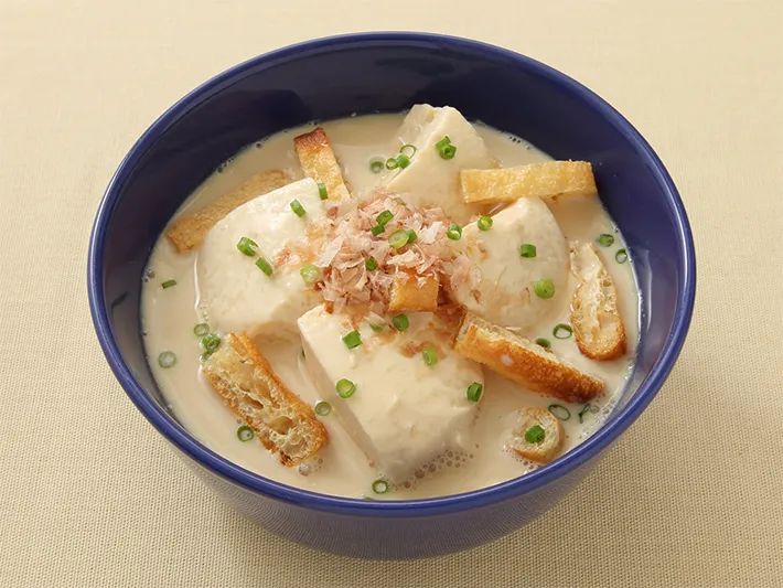 食べる時に豆腐を崩しながら、スープとからめてお召し上がりください。油揚げの香ばしさがアクセントになります。