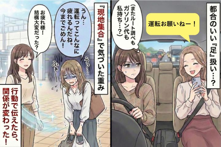 仲の良い友人との外出は、本来なら楽しい時間のはず。けれど、いつの間にか一方的に頼られることが当たり前になっていたら。今回は、車を出すたびにモヤモヤを感じていた女性が、ある決断をしたエピソードをご紹介します。