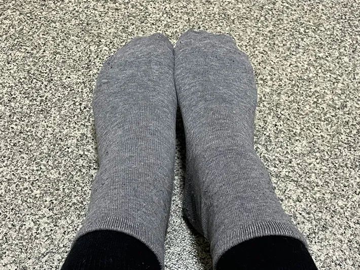 まずは、いつも通り靴下を履きます。