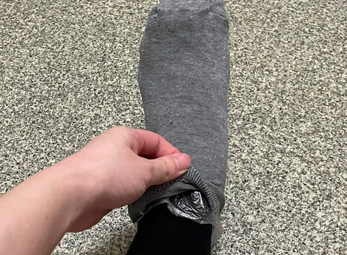 筆者の使ったポリ袋は、履くとくるぶしまでの長さだったため、靴下ですっぽりと隠せました。