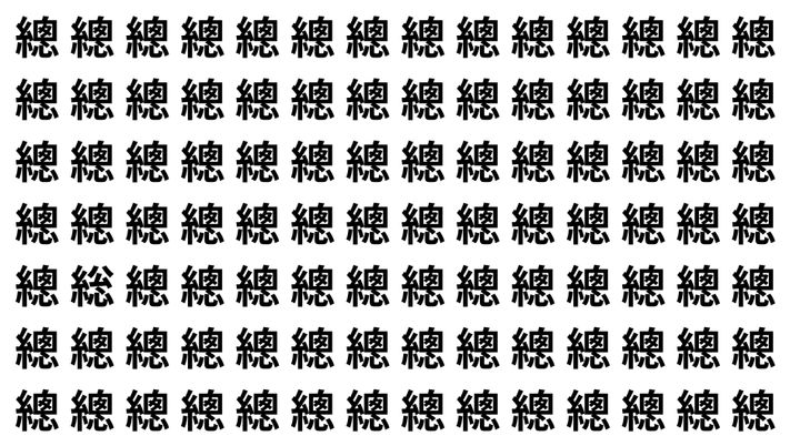 たくさんの「總」の中に、よく似た別の漢字が1文字だけ隠れています。