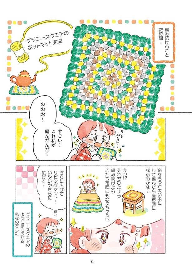 定番モチーフ「グラニースクエア」。編み続ければコースターからリビングマットにもなる!?/あめばあむほど好きになる