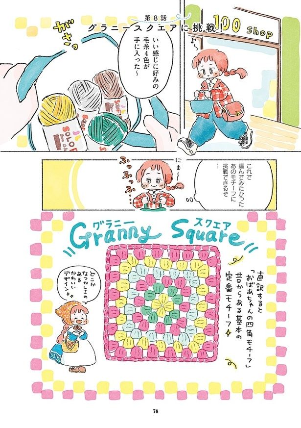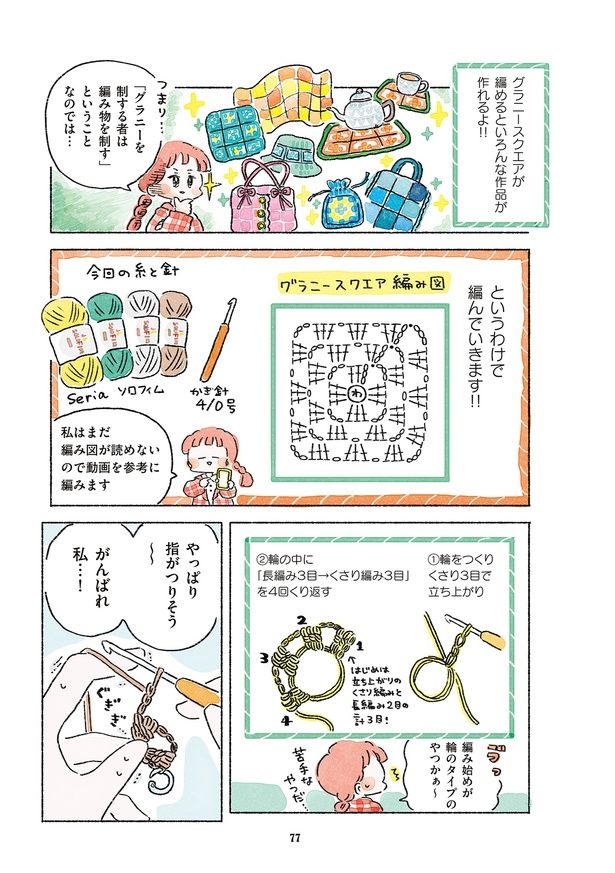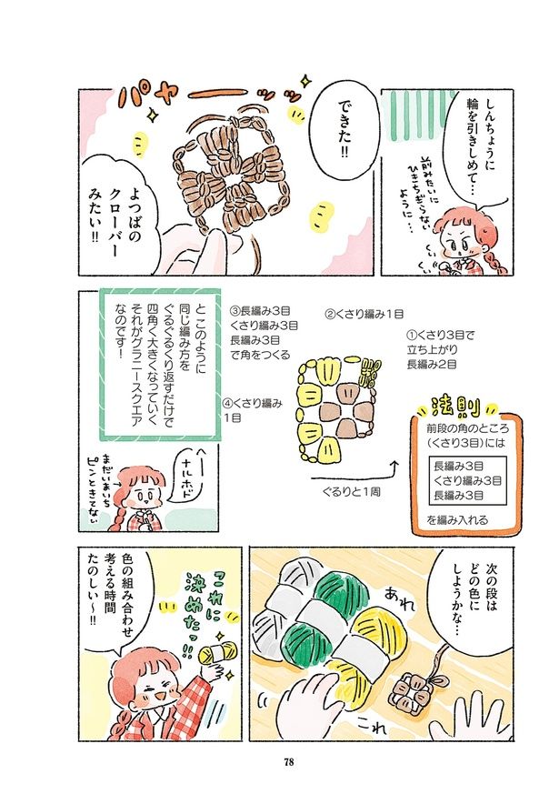 3. 定番モチーフ「グラニースクエア」。編み続ければコースターからリビングマットにもなる!?/あめばあむほど好きになる