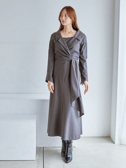 カシュクールワンピース×ロングブーツ