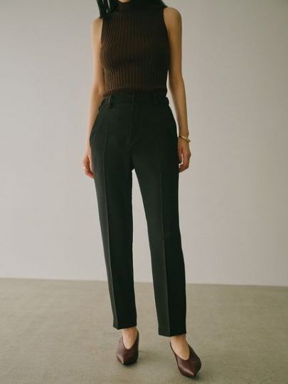 また、Iラインのシルエットを選ぶことでより美脚効果アップ!すっきりとしたストレートパンツや、センタープレスが入った品のあるデザインがおすすめです。
