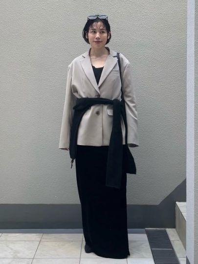 腰とヒップの位置が高くボリュームがあるので、タイトなスカートやパンツでヒップラインを引き立てるとスタイルアップできます。