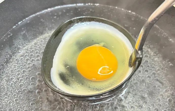 おたまを活用するだけで、誰でも簡単にきれいなポーチドエッグに仕上げられますよ。