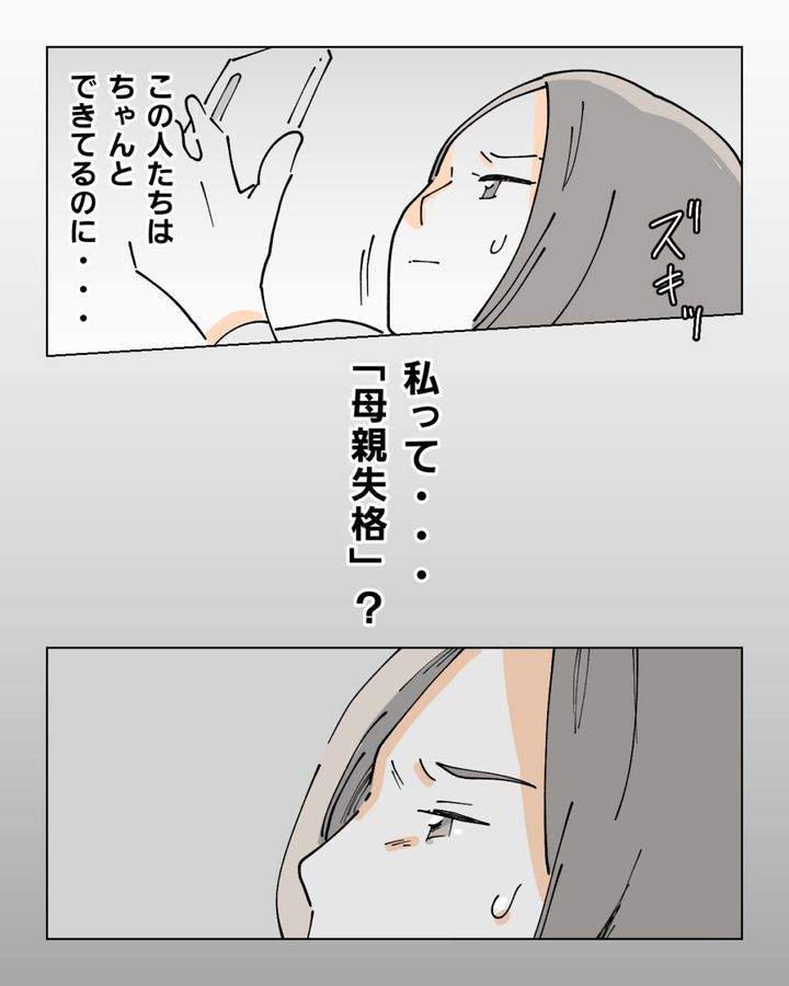 「この人たちはちゃんとできてるのに・・私って・・『母親失格』?」と考えて、胸がズキッとしたと話すナオ。