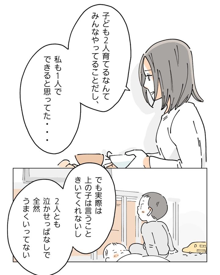 「子ども2人育てるなんて、みんなやってることだし、私も1人でできると思ってた・・でも、実際は上の子は言うこと聞いてくれないし、2人とも泣かせっぱなしで全然うまくいってない」と静かに話すナオは、