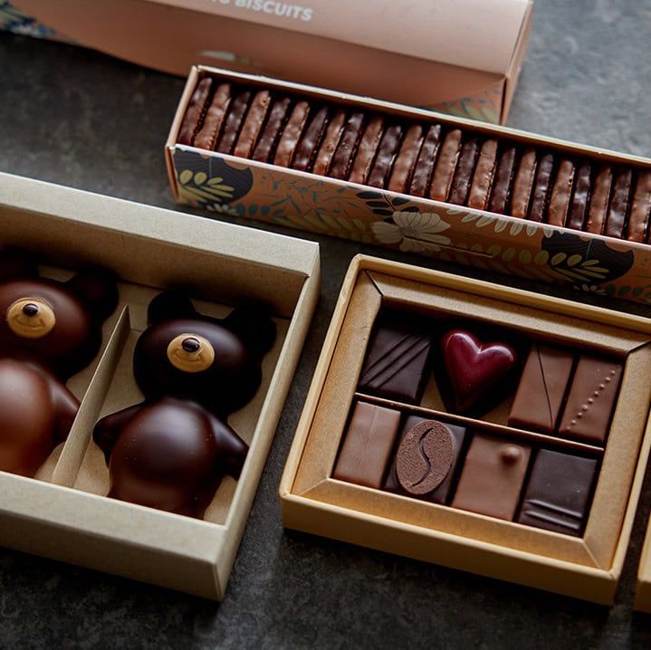 人工的な保存料や香料は一切使わないのがシェフの哲学。ブランドのアイコンである「キツネ」の形をしたショコラに表現される、素材を最大限に生かしたエレガントな味わいは、一流の料理人が仕立てるような、緻密なショコラと評されています。