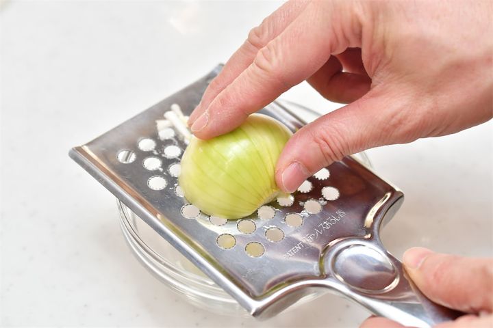 1. 玉ねぎをすりおろす。