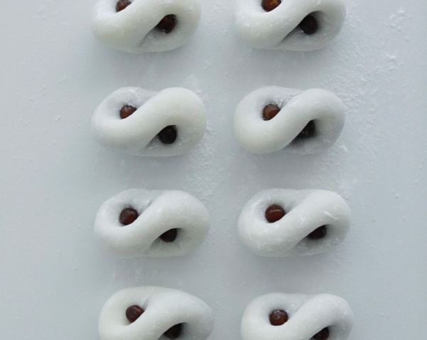 〈季のせ〉80000(はちまん)大福 260円 宇美八幡宮内に店を構える〈季のせ〉ならではの大福。八幡宮と80000をかけ、さらに縁起の良い末広がり、無限に良いことが続きますようにとの願いを込めた“8”の形を模し、塩豆大福に仕上げました。