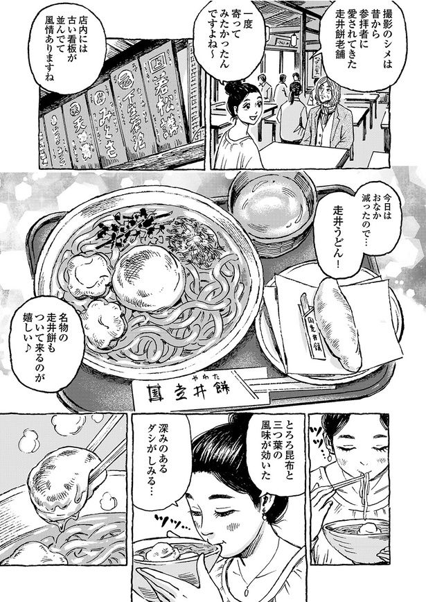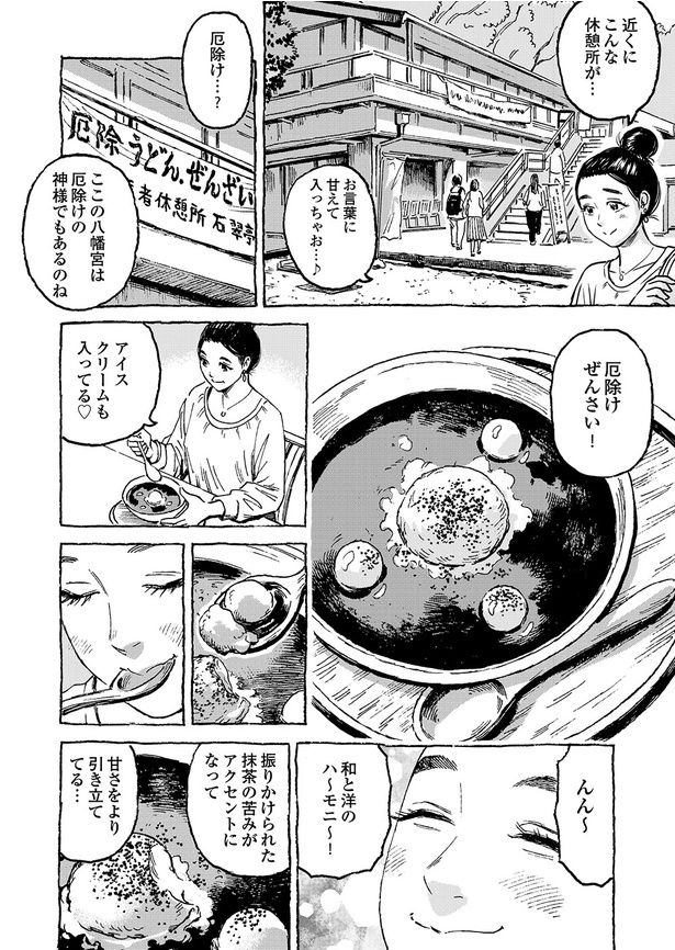 2. 【グルメ漫画】厄除けで有名な石清水八幡宮。参拝の帰りには、名物の走井餅を!