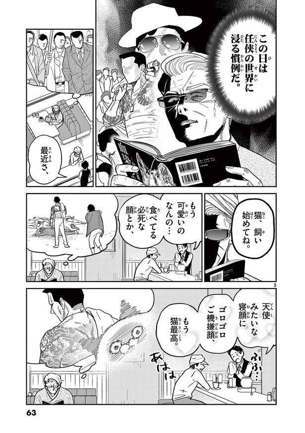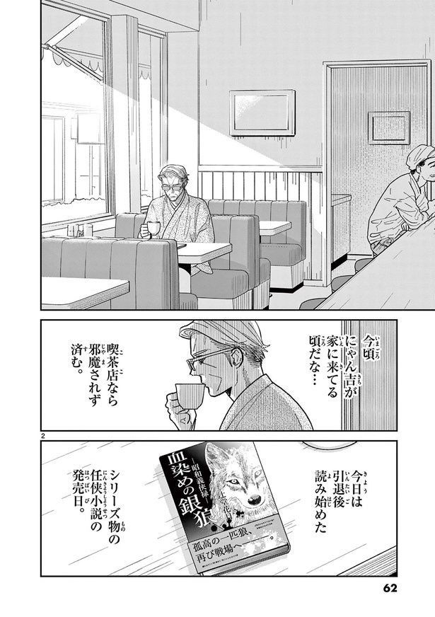 3. 小説に集中するため喫茶店へ。静かに読みたいのに、客の会話から猫が割り込んでくる…!/オヤジとにゃん吉⑮