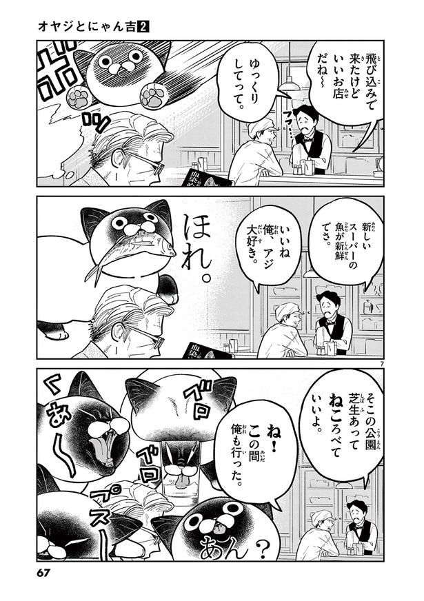 小説に集中するため喫茶店へ。静かに読みたいのに、客の会話から猫が割り込んでくる…!/オヤジとにゃん吉⑮
