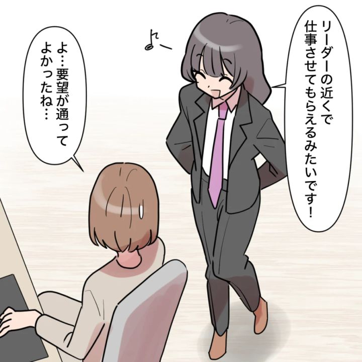 田中さんはリーダーたちの近くで仕事させてもらえることになったと誇らしげに言ってとても嬉しそうだったので、私は「要望が通ってよかったね」としか言いようがありませんでした。