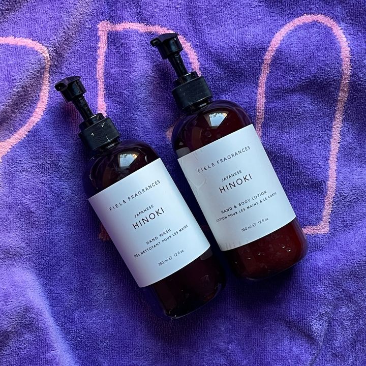 ほのかな香りを楽しみたいときには、〈Fiele Fragrances〉の「Japanese Hinoki」のローションを使っています。