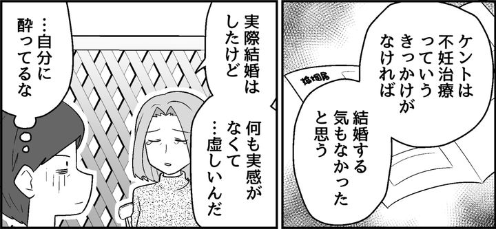 「実際、結婚はしたけど何も実感がなくて……虚しいんだ」エイコは悲しげに、そうつぶやきました。きっと自分があまり幸せじゃないから、私に祝福してもらうことにこだわっているんでしょう。私は呆れながら言葉を返します。