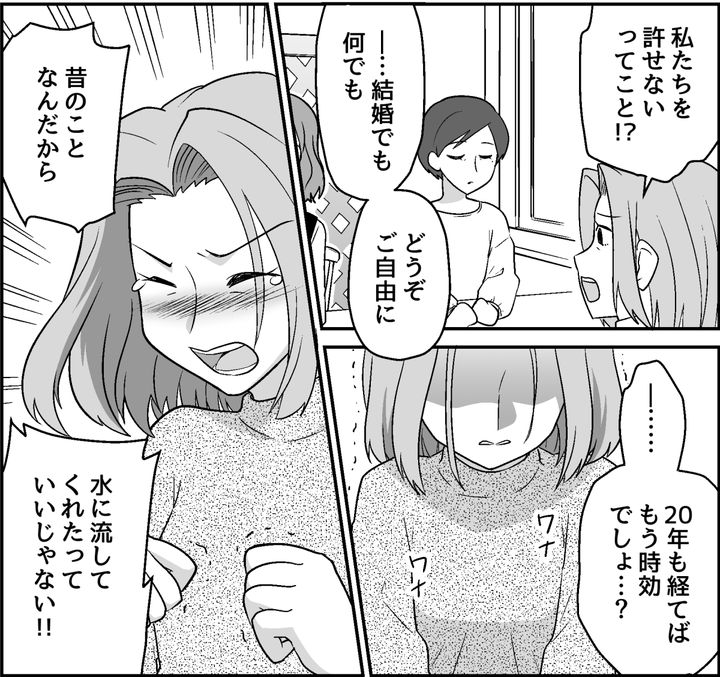 「昔のことなんだから、水に流してくれたっていいじゃない!」