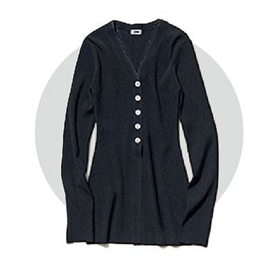 メリノウールにシルクも織りまぜた、肌ストレスを感じさせないなめらかな風合い。太めのリブにフロントボタンもあしらい、ミニマルな形ながらもの足りなさはなし。