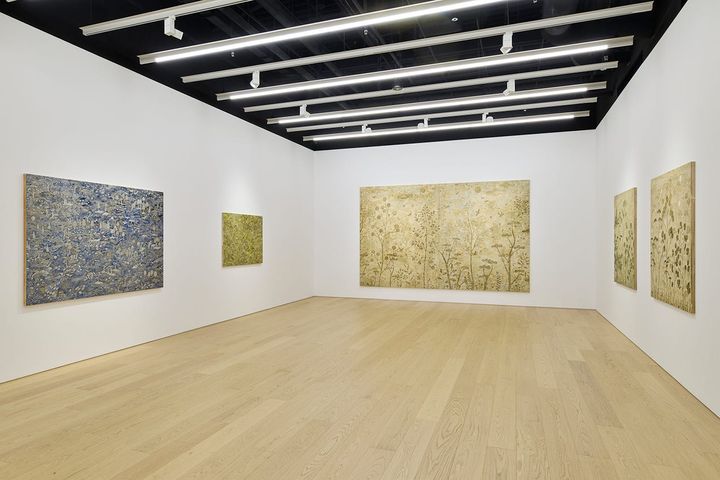 小山登美夫ギャラリー京橋で2月21日まで開催されている風能奈々の個展「私はそこに行ける。あなたも」。会期前、作品をインストール中の会場にて撮影。 photo: shin inaba