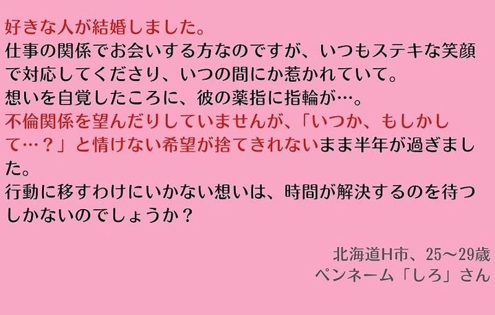読者からのお悩み「好きな人が結婚…でも、どこかで期待してしまっている自分がいて…」