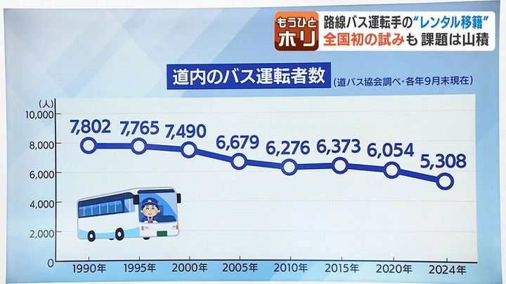 北海道バス協会によりますと、道内の加盟社に所属するバス運転手の数は、2024年9月の時点で5308人。