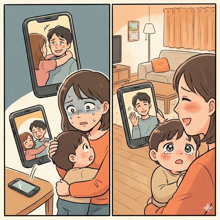 「あなたもね、無理しないで」 夫は穏やかな表情で手を振り、私たちは通話を終了……したはずでした。