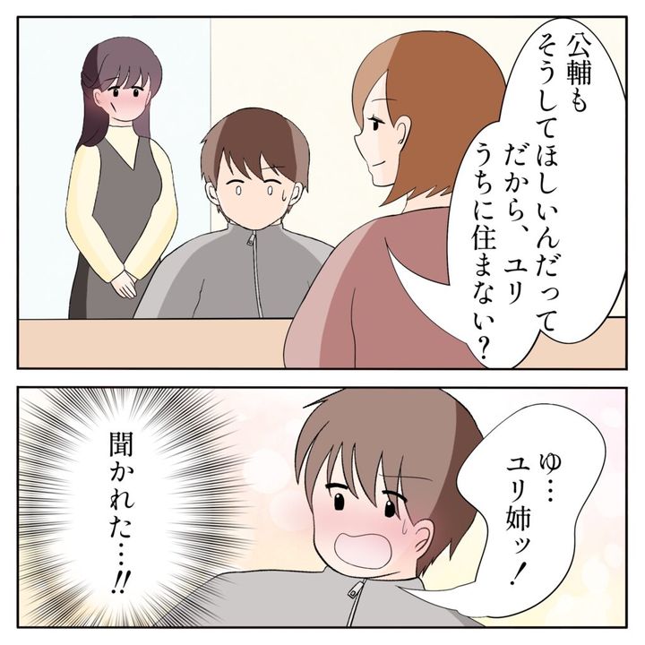すると、「公輔もそうしてほしいんだって。だからユリ、うちに住まない?」と話しかける姉ちゃんの視線の先にはユリ姉が!「ゆ・・ユリ姉ッ!」と言いつつ、「聞かれた・・!!」と動揺する俺。頬が熱くて熱くて仕方ありませんでした。