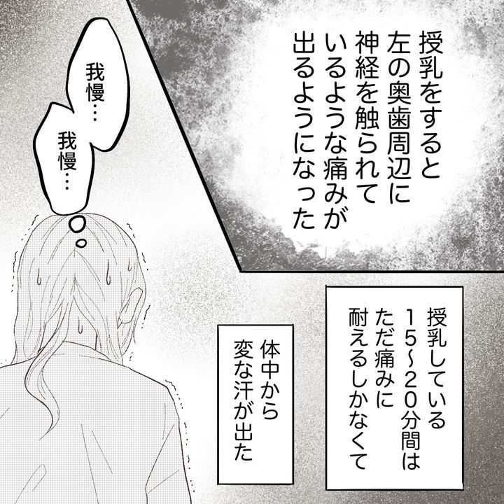 授乳中のこの痛みは麻酔なしで歯を削られているような感じというか、神経に直接響いてくる痛みというか……。