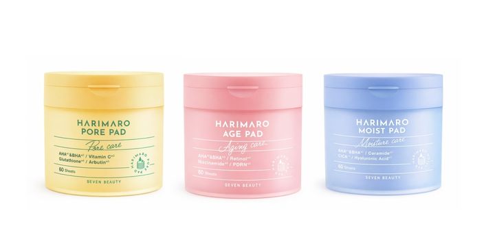 〈左から〉ハリマロ ポア パッド、エイジ パッド、モイスト パッド 各60枚入り ¥1,430/SEVEN BEAUTY