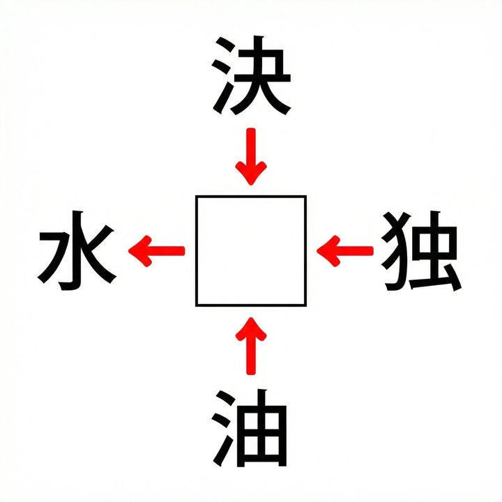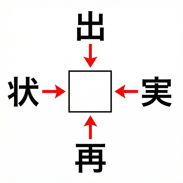 中心の空欄に「ある漢字1文字」を当てはめて、上下左右の漢字とつながる4つの二字熟語を完成させるパズルです。