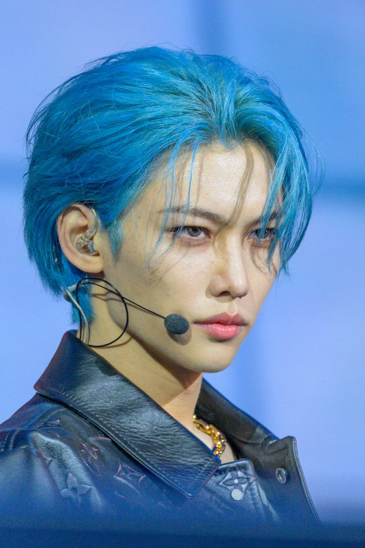 ロラパルーザ・パリで6万人の観客を熱狂させたStray Kids。ライトブルーのヘアにさらに鮮やかなブルーを重ね、ステージとともに鮮烈なインパクトを残した。