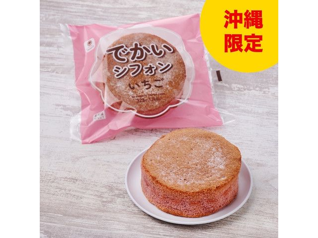 ふわふわいちごシフォン生地にいちご風味のホイップクリームをたっぷり入れたシフォンケーキです。 沖縄で販売