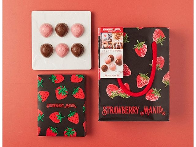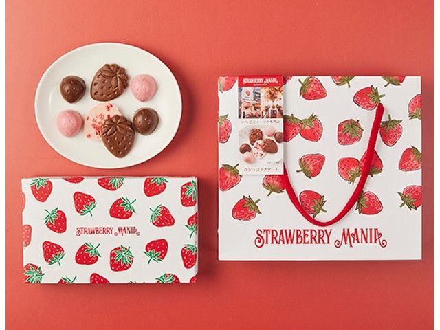 いちごのスイーツ専門店「ストロベリーマニア」監修のかわいらしい苺型のチョコレート2種(ミルク・ホワイト)アソートのバレンタインギフト。