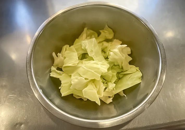 キャベツを洗い、手で一口大にちぎります。
