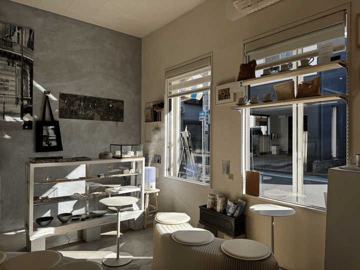 山手駅から続く大和町商店街は珈琲豆のお店やカフェが多く、私が知っているところだけで4軒あります。簡単にいうと、150mに1軒の計算。多いと思うのですが・・・。こちらのお店はアクセサリー雑貨屋やインテリア小物も置いてある、白×グレージュの店内で、大人女性が好きそうなお店です。