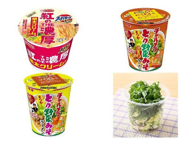 3. 今週新発売のキャベツまとめ!『スーパーカップ1.5倍 紅のTHE濃厚 明太クリーム味ラーメン』、『チャルメラカップ とり野菜みそピリ辛ラーメン』など♪