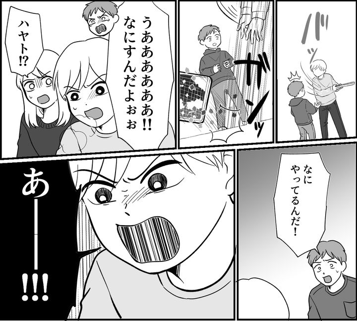 ダイチが黙々と進めていたパズルを完成させ、喜びはじめました。満面の笑みのダイチ。夫がダイチを褒めたとき、ハヤトが立ち上がり、無言でダイチの作ったパズルを壊し始めたのです。号泣するダイチ。私は思わずハヤトを叱ります。ハヤトは感情が爆発してしまい、そこらへんにあるものを投げ始めました。