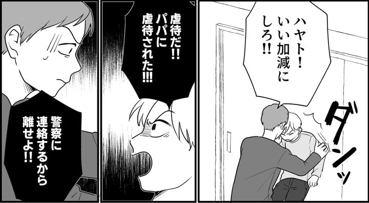 夫が力ずくでハヤトを制止させたことを虐待だと言い張り、警察に通報したのです。
