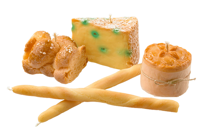 パンやマフィン、チーズなど、今にも芳ばしい香りが漂ってきそうな佇まい。これらは、イギリスの〈パントラーズ・レーションズ〉の職人の手作業によって誕生したキャンドル。実物大で本物さながらの質感を再現した造形もユニーク。高品質な大豆ワックスと蜜蝋をブレンドした素材とコットン芯で出来ていて、環境にもやさしい。パッケージはすべてリサイクル可能。