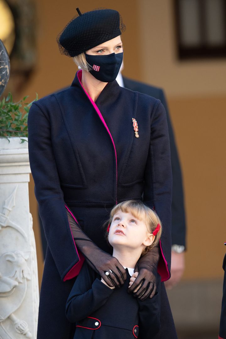 2020年11月、シャルレーヌ公妃がまだ療養に入る前に、ナショナル・デーのセレモニーに出席したときのショット。まもなく6歳を迎えるガブリエラ公女の母を見上げる表情には、まだまだあどけなさが残ります。