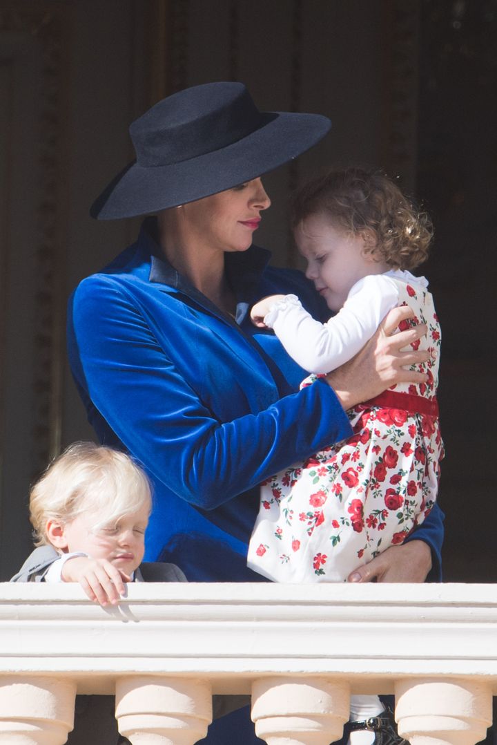 2017年のナショナル・デーでは、まもなく3歳になる公女との美しき母子ショットを披露。ロイヤルブルーのコートドレスに、つば広帽をまとったシャルレーヌ公妃の気高き美しさにうっとり。