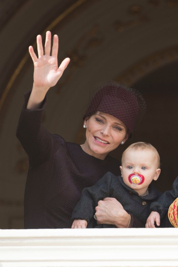 2015年のナショナル・デーでは、1歳目前のガブリエラ公女とバルコニーへ。おしゃぶりをくわえるお人形のような公女と、大きく手を振るシャルレーヌ公妃のツーショットが幸せいっぱい。